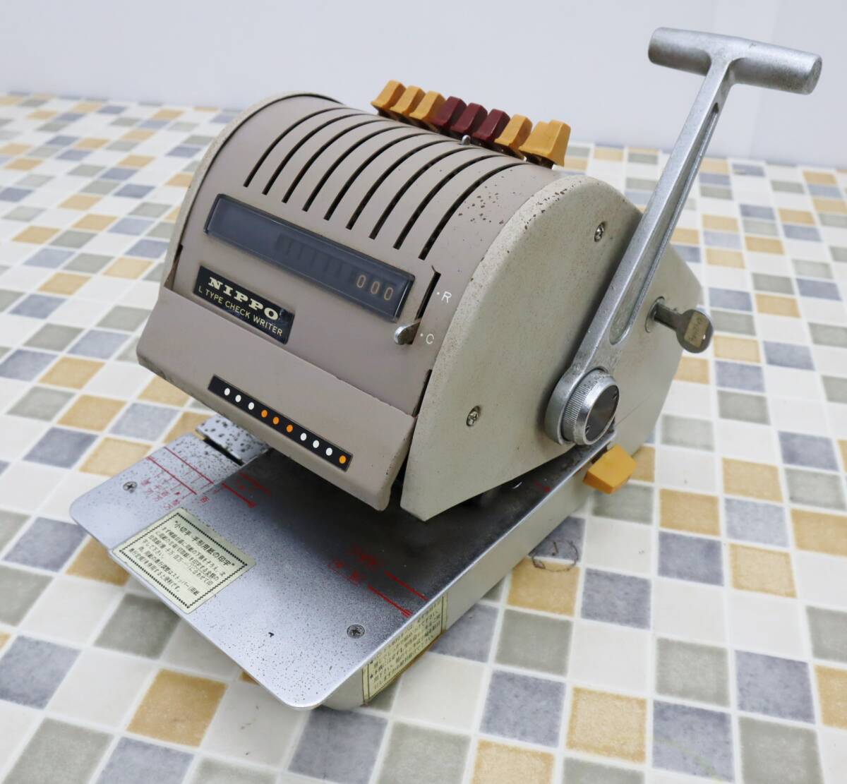 ◆値下げ |チェックライター 昭和レトロ 9桁印字|NIPPO ニッポー LD 雑貨|手回し 小切手 レトロ ジャンク扱い■P4139の出品です!