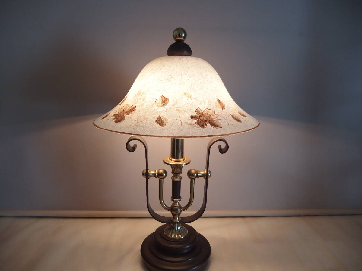 - 14)アンティーク テーブルランプ ガラスシェード 花描画