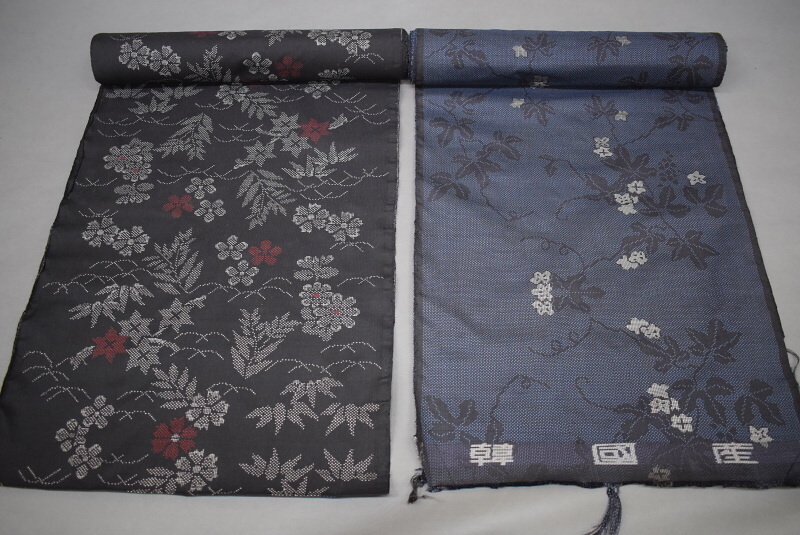 > B8-2【凛々】新古品 正絹 韓国大島紬 着尺反物 紺・黒 2点組 未仕立て品 ②