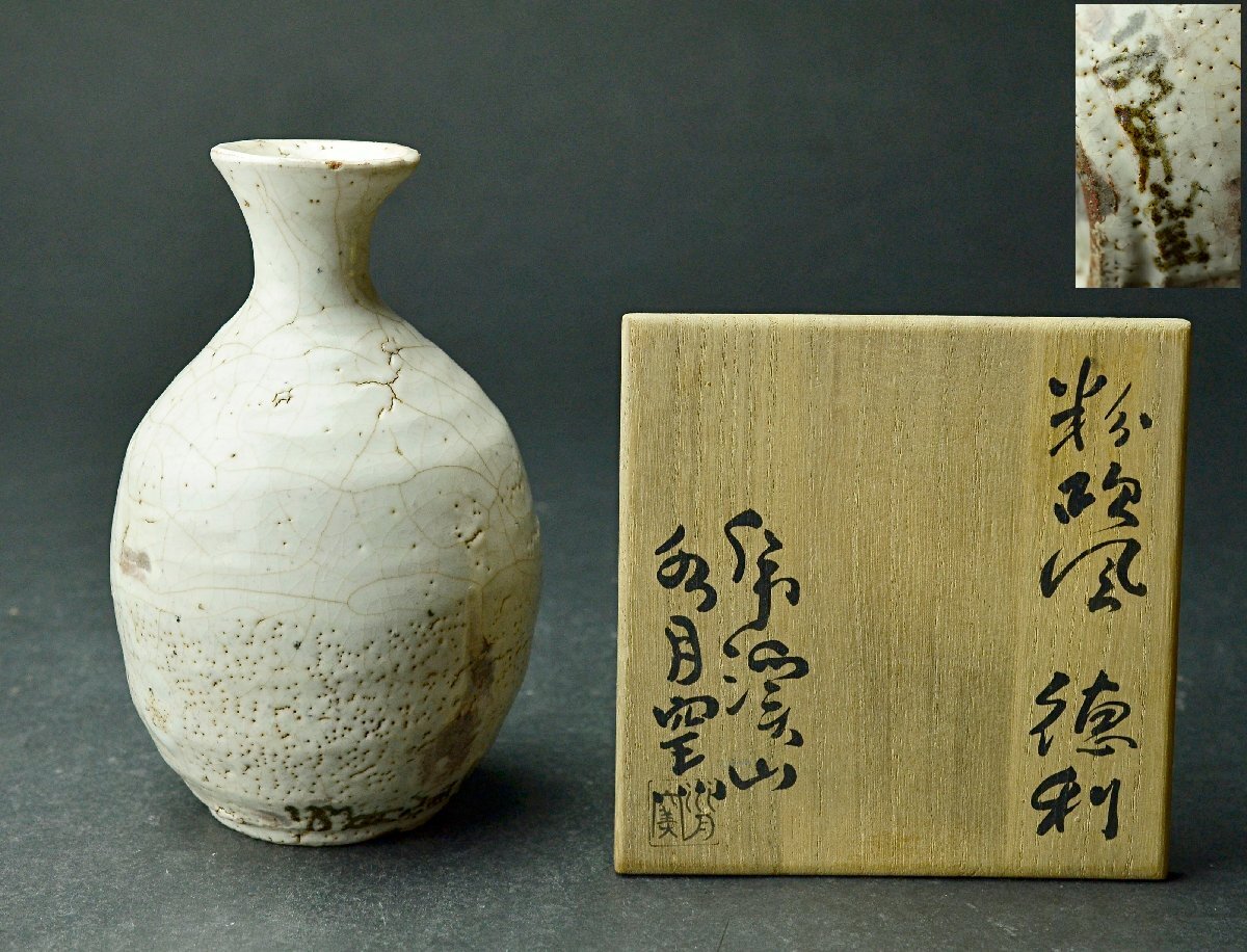 - 【YB】荒川武夫(作 虎渓山 水月窯 『 粉吹風 徳利』・共箱付属 ★日本酒器荒川豊蔵人間国宝古玩骨董25Y648-2