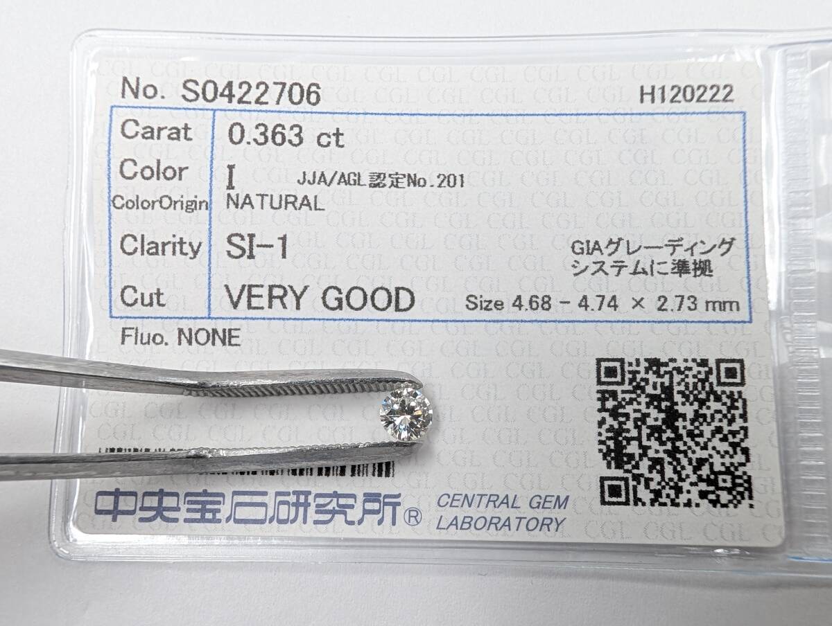 - 天然ダイヤモンド ルース 0.363ct / I / SI-1 / VERY GOOD☆CGL 中央宝石研究所 ソーティング ダイヤ 天然石 宝石 裸石 ジュエリー