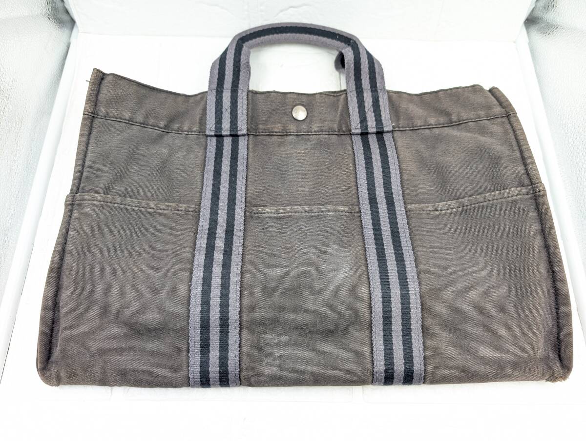 - 1円~☆HERMES エルメス フールトゥ トートバッグ ビンテージ グレー系 キャンバス メンズ