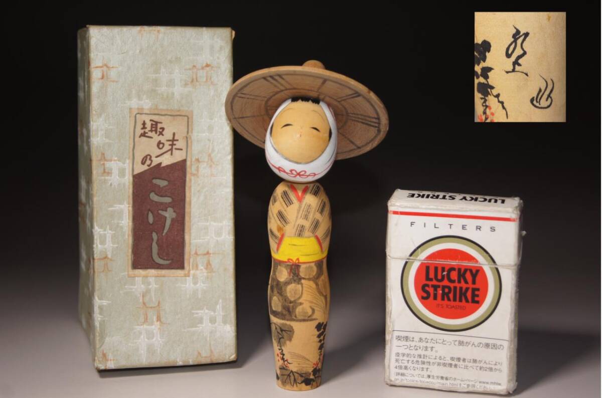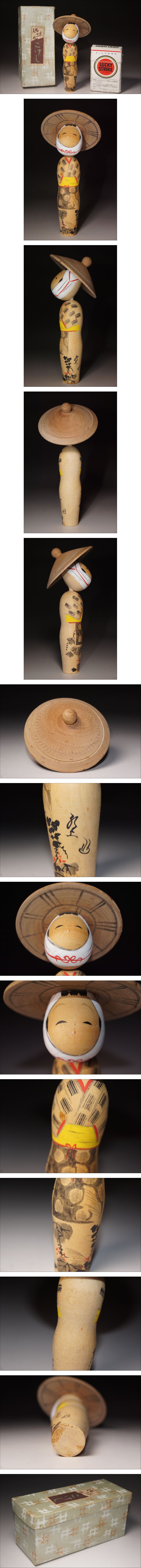 - 昭和レトロ こけし 趣味のこけし 水上?温泉 笠を被った 着物 デッドストック 箱付 歴史 お土産 郷土人形 郷土玩具 民芸 伝統工芸 置物