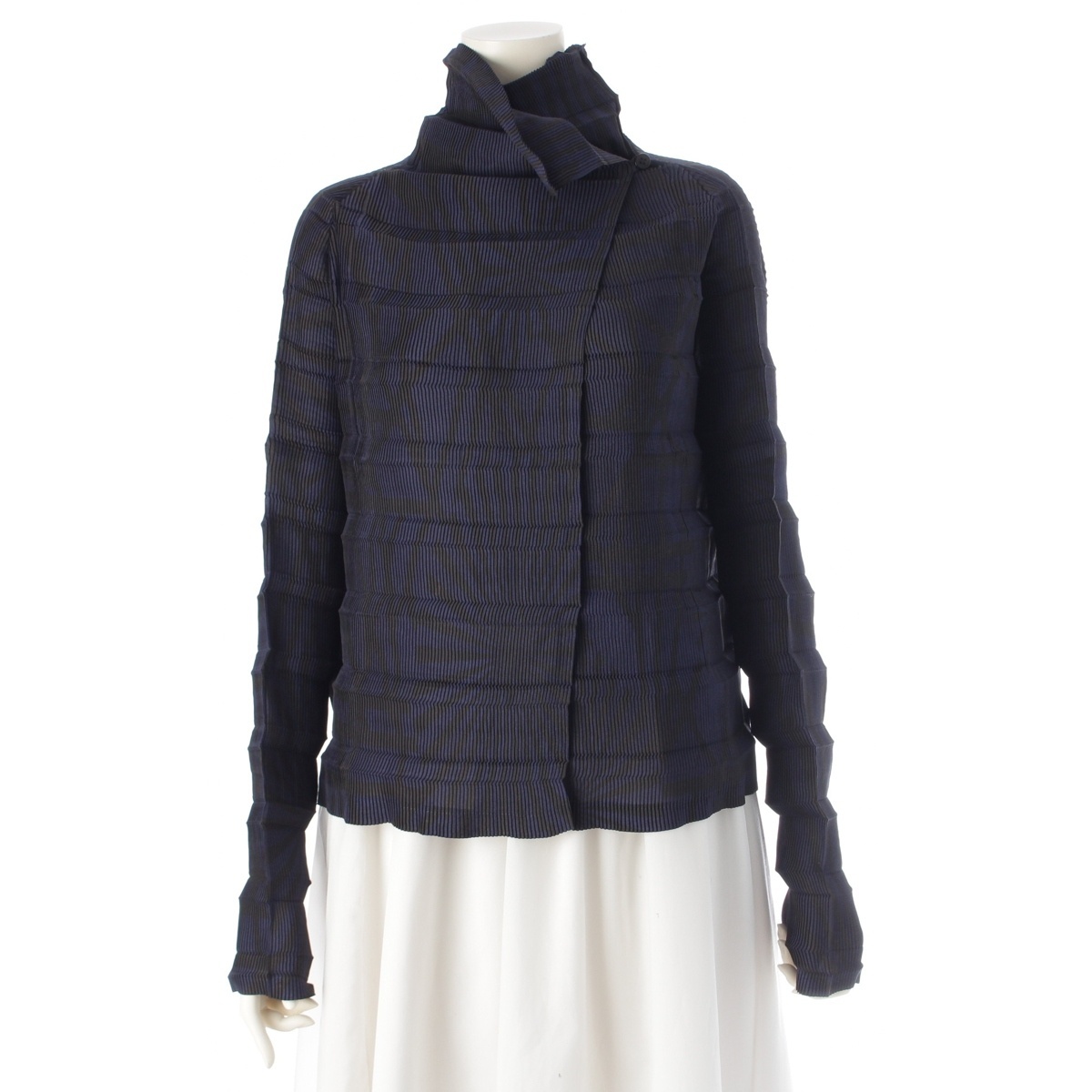 - イッセイミヤケ フェット プリント 総柄 プリーツ アコーディオン カーディガン IF64FJ784 ネイビー ブラック 2【中古】