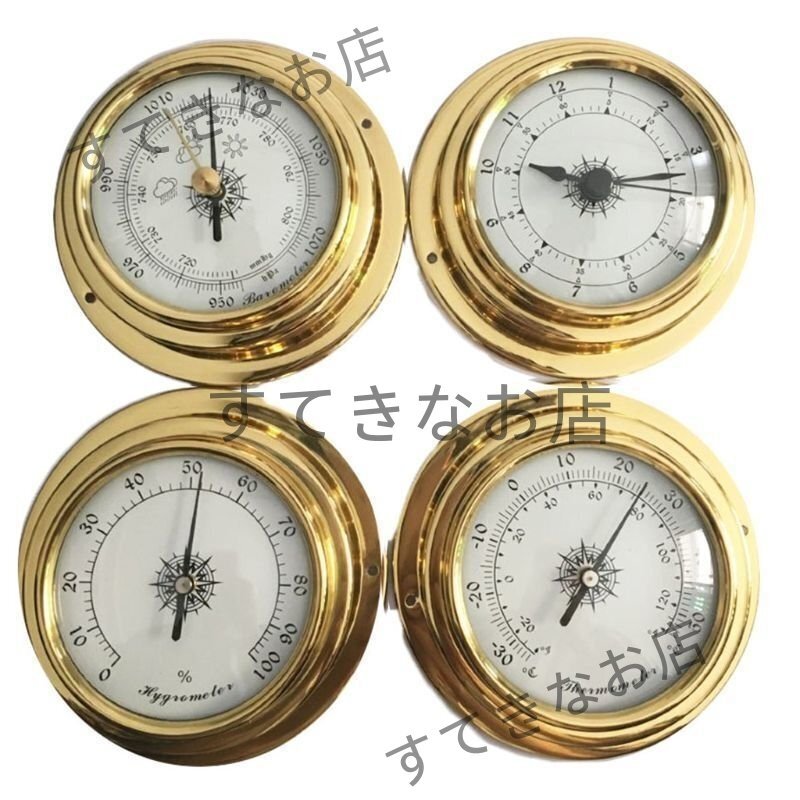 - 4つセット ブラス 真鍮 時計 温度計 湿度計 気圧計 ビンテージ 船 窓 ボート アンティーク トレーラーハウス