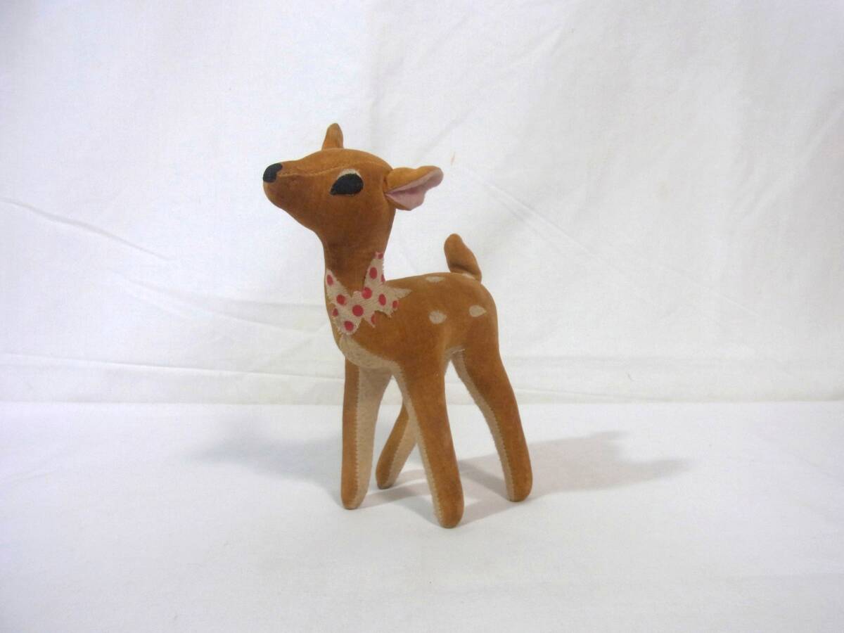 > 古物 アンティーク ビンテージ 東京動物園協会 上野 多摩 ①小鹿 60年代 当時物 オリジナル レトロ シール付 使用感有 おがくず製 未手入