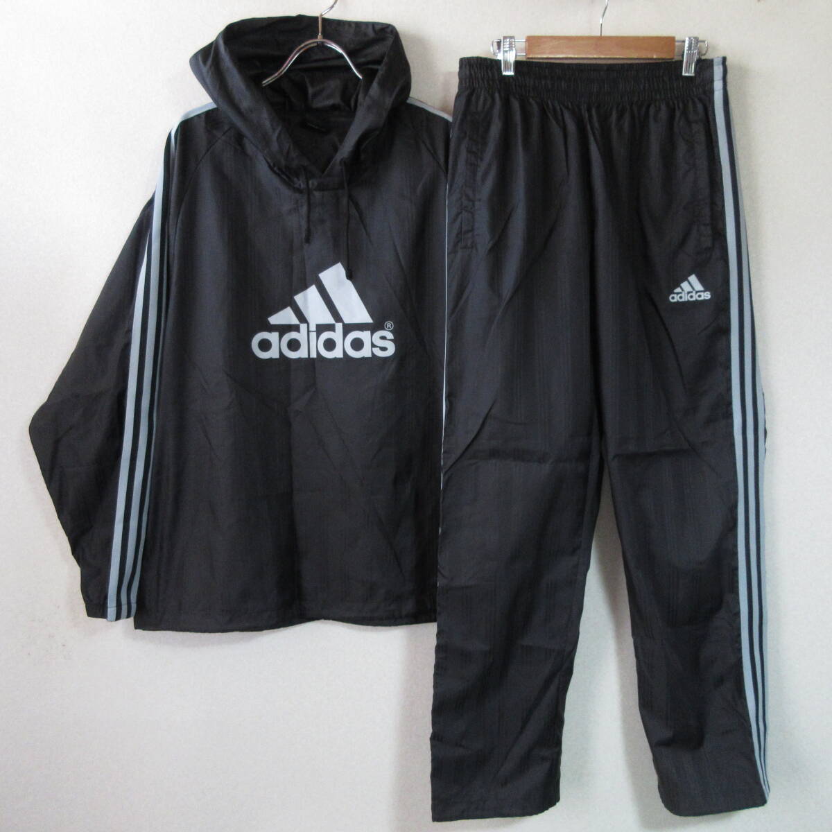 - ○良品 adidas アディダス◆ウィンドブレーカー セットアップ フード付き ピステ&ロングパンツ◆メンズ ブラック/グレー Mサイズ