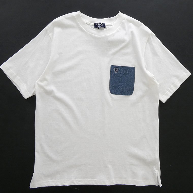 > 新品 ミスターヴァン 2025春夏 シアサッカー ポケット 半袖 Tシャツ L【va652068t_78_L】 MR.VAN ロゴ カットソー ポケT ワッペン コットン