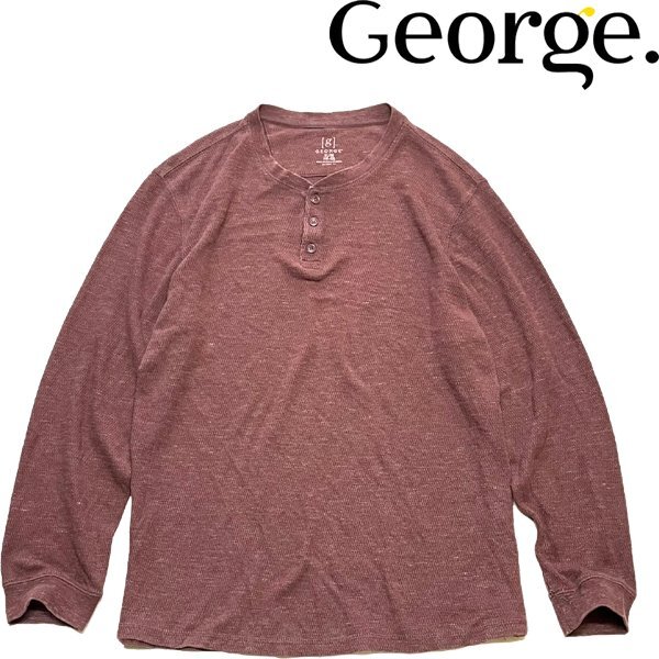 - 1点物◆ジョージGEORGEヘンリーネック長袖サーマルTシャツ古着メンズXLレディースOKアメカジ90sストリート/スポーツUSスウェット赤362067