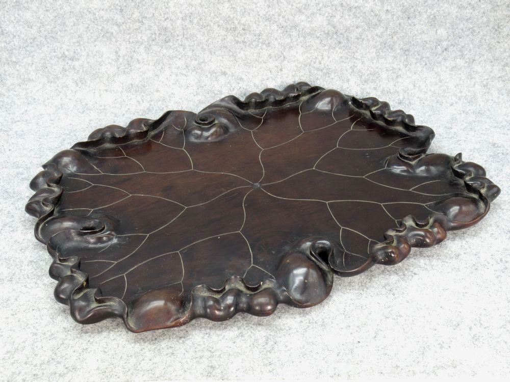 - 【蔵出し屋】 煎茶道具 44㎝×33.5㎝ 1428g 唐物 唐木 古玩 蓮葉形 葉盆 煎茶盆 検/ 讃岐彫 朱泥 急須