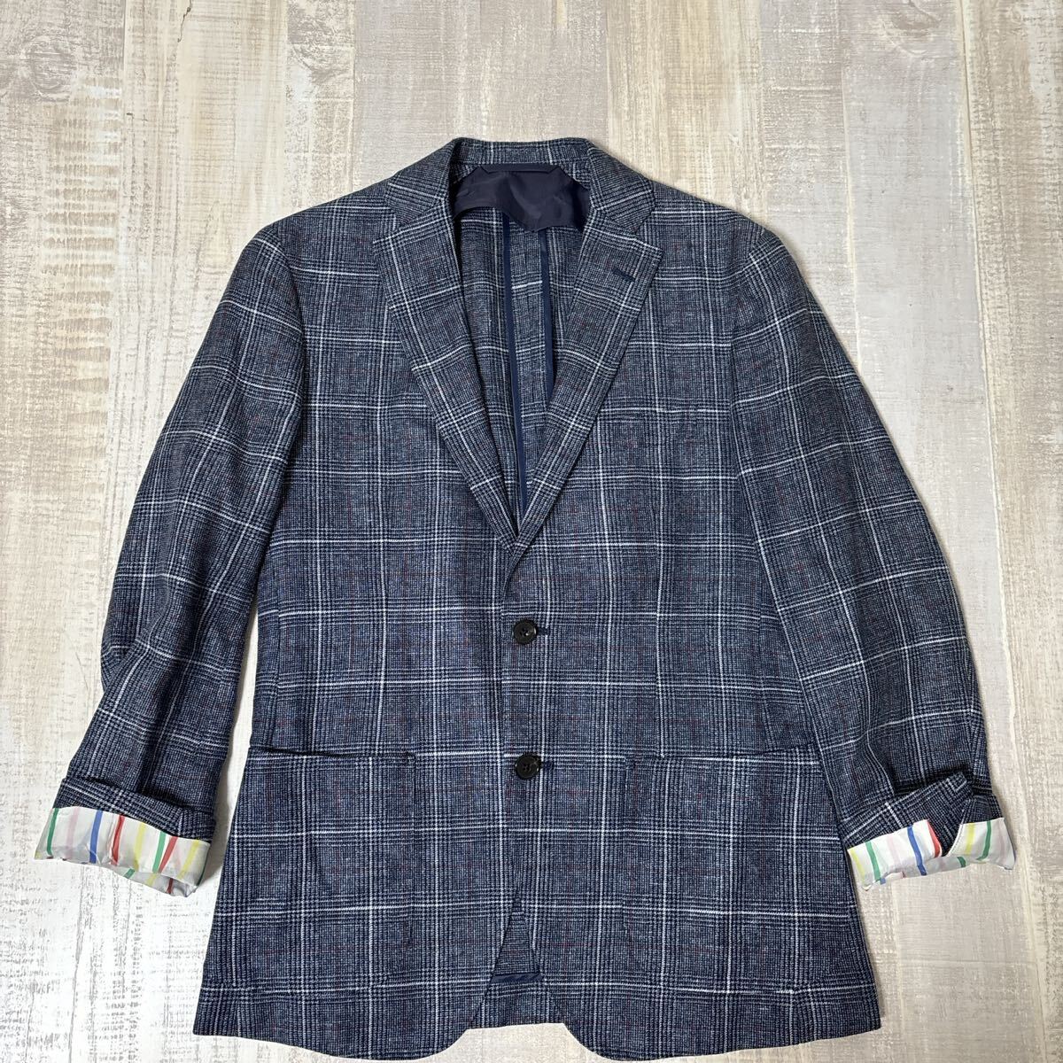> 【未使用級 イタリア製生地使用】blazer's bank.com REDA 2B リネン混 グレンチェック テーラードジャケット スーツカンパニー 160cm-6Drop
