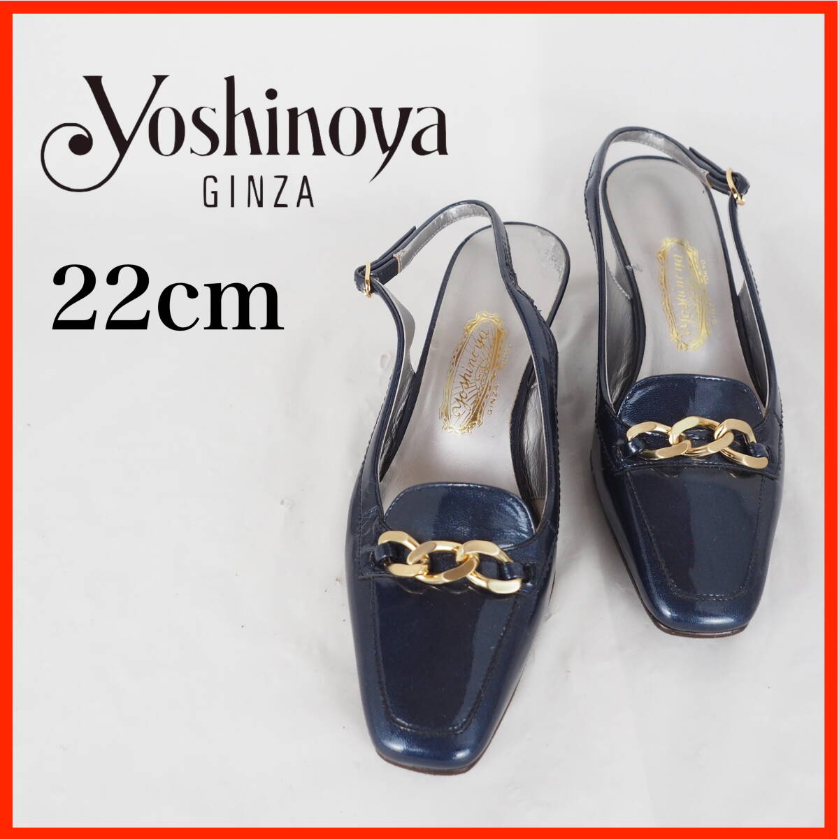 - OK5103★美品★GINZA Yoshinoya*銀座ヨシノヤ*レディースパンプス*スリングバック*22cm* エナメルネイビー