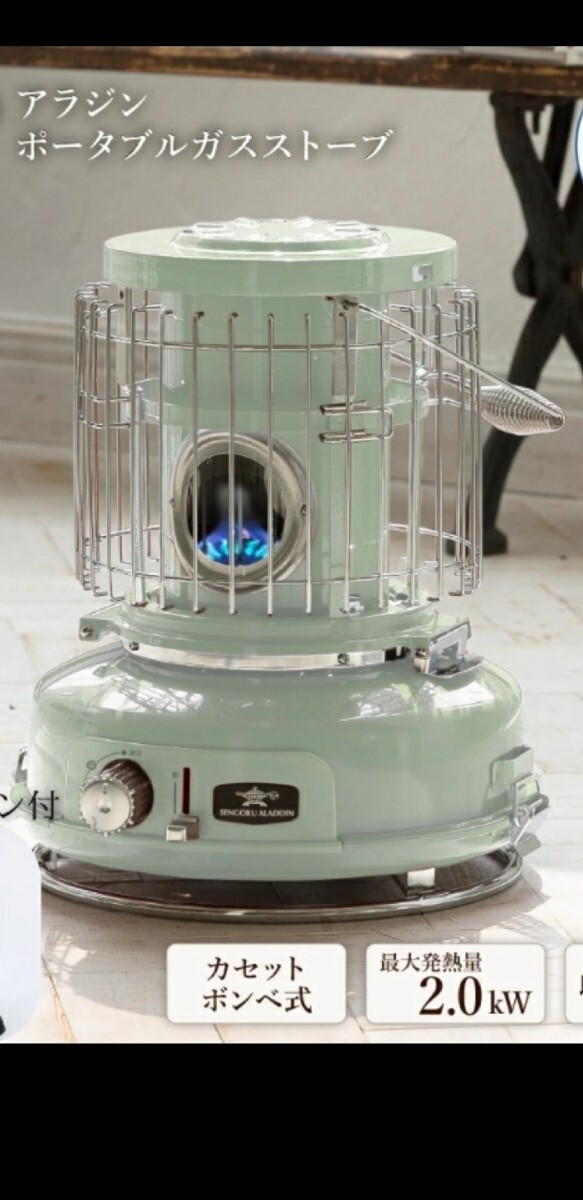 - アラジン グリーン 緑 ポータブルガスヒーター 【ストーブファン付】 SAG-BF02CFG Aladdin カセットボンベ式 新品未使用 送料無料