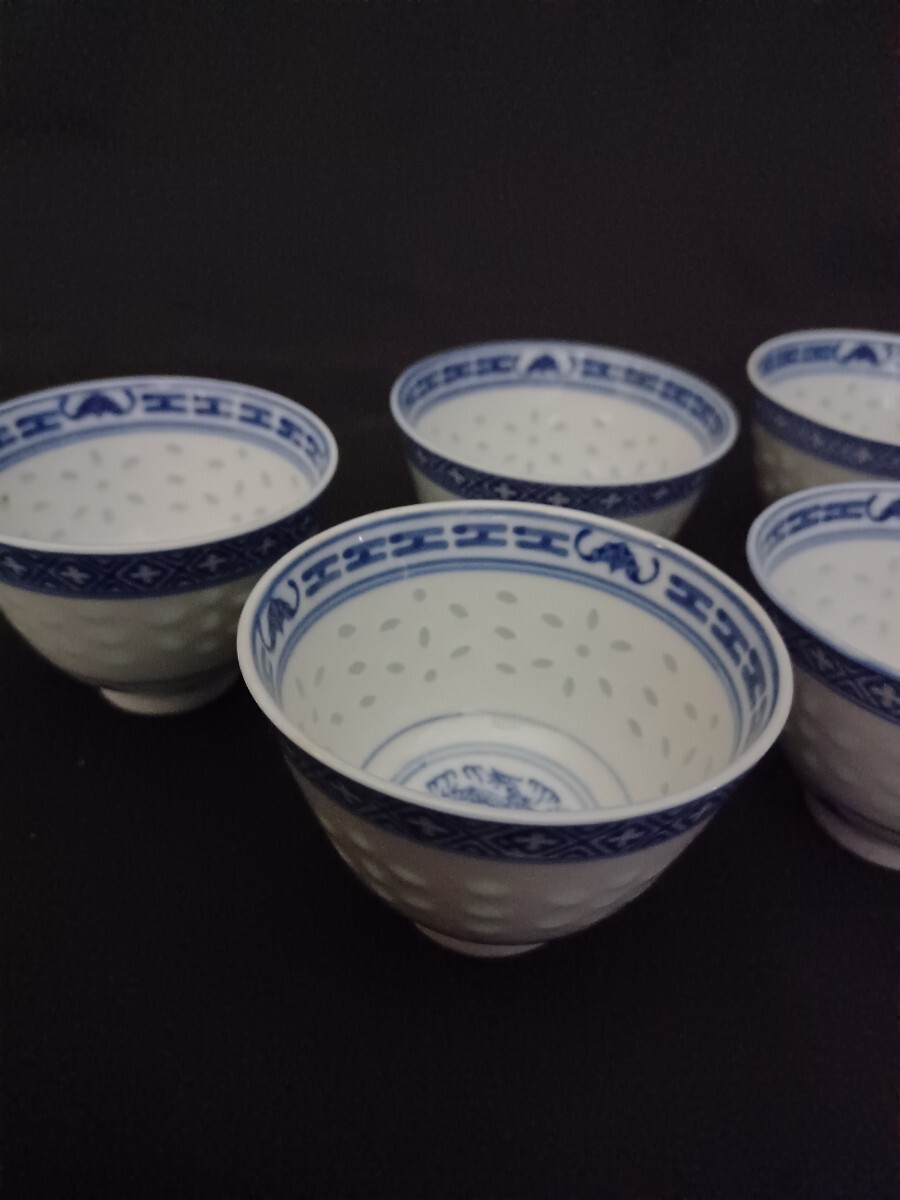 - 1円~ 唐物 玩玉 蛍手 煎茶碗 五客 煎茶道具