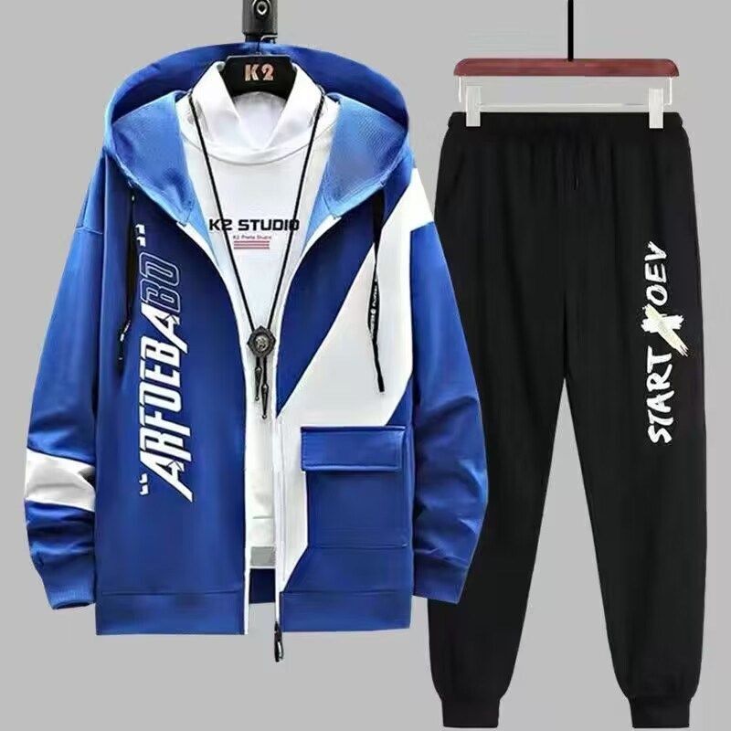 - 新作前開き ボーイズ メンズジャージ スウェット 上下セット セットアップ カジュアル フード付き ブルー黒 白 3色 M~3XLサイズ選択可