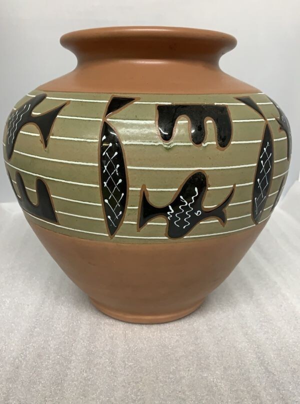> 3F829→魚 壺 花瓶 花器 花生 魚絵 陶磁器 詳細不明 中古 陶器製 飾り壺 美術工芸品
