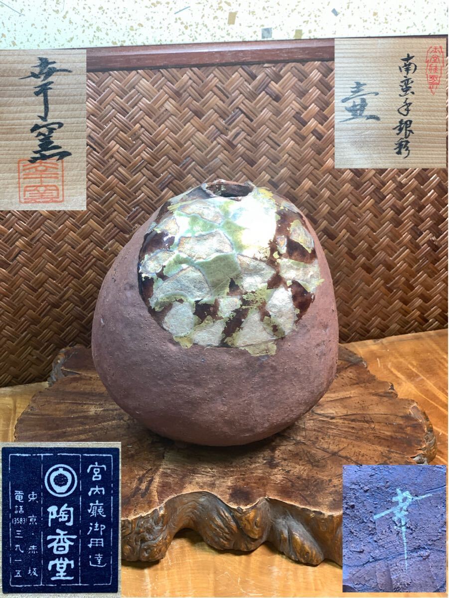 > 時代物 花器 谷口幸夫 作 南蛮手銀彩 壷 共箱 在銘 良品 九谷幸窯 陶香堂 華道具 茶道具 花器 茶器 和美術 和骨董 骨董 古玩 花生 花入 壺