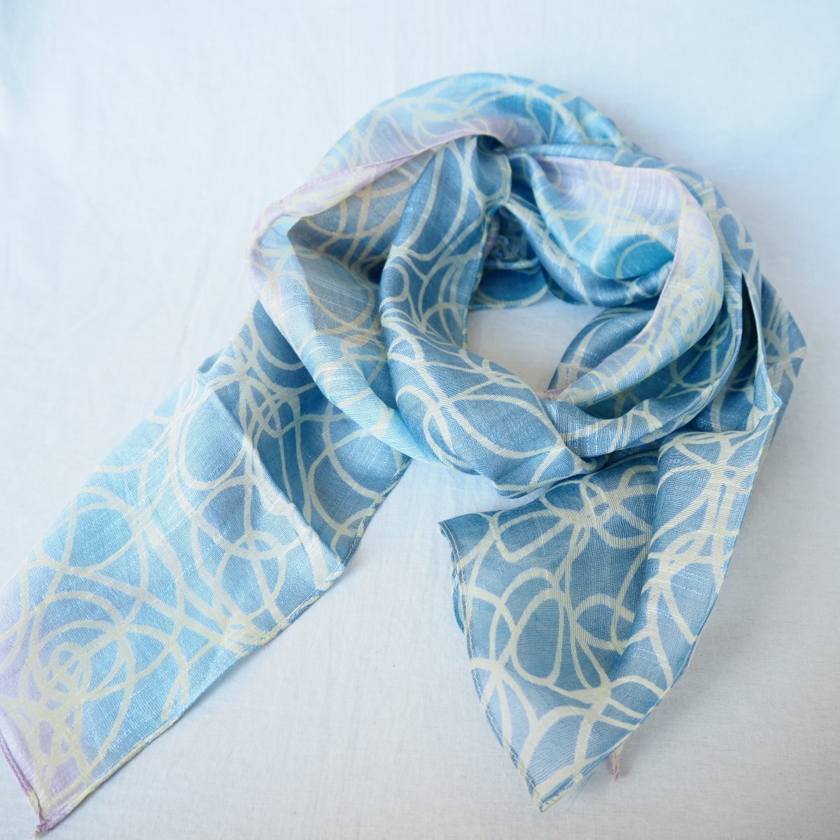 - スカーフ 軽い コンパクト ストール シルク 混 レーヨン ふんわり 約30×150cm 春夏 夏用 薄手 ブルー