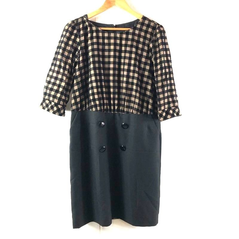 - リバティホール Liberty Hall ワンピース タグ付き チェック ボタンデザイン 裏地付き ブラック系 ブラウン系 3Lサイズ 2025090500108