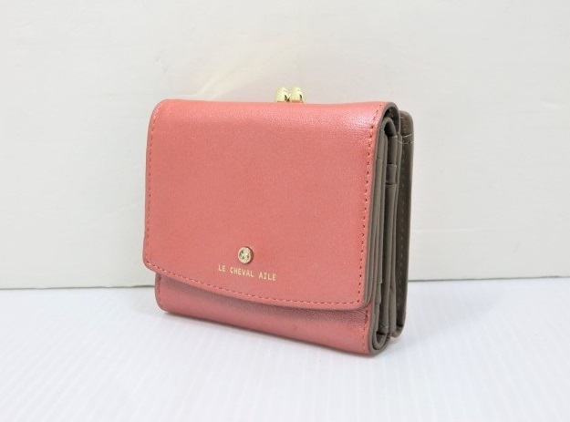 > 【中古品】 シュヴァル・エレ LE CHEVAL AILE 開運財布 がま口 三つ折り 財布 お守りコイン 光沢のあるオレンジ 〇YR-15852〇