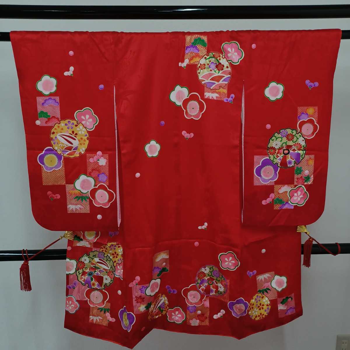 > 【石七90】七五三 3歳 着物&長襦袢 2点セット 絹 女児 式典 花柄 赤 華やか 上品 可愛い おしゃれ 220609