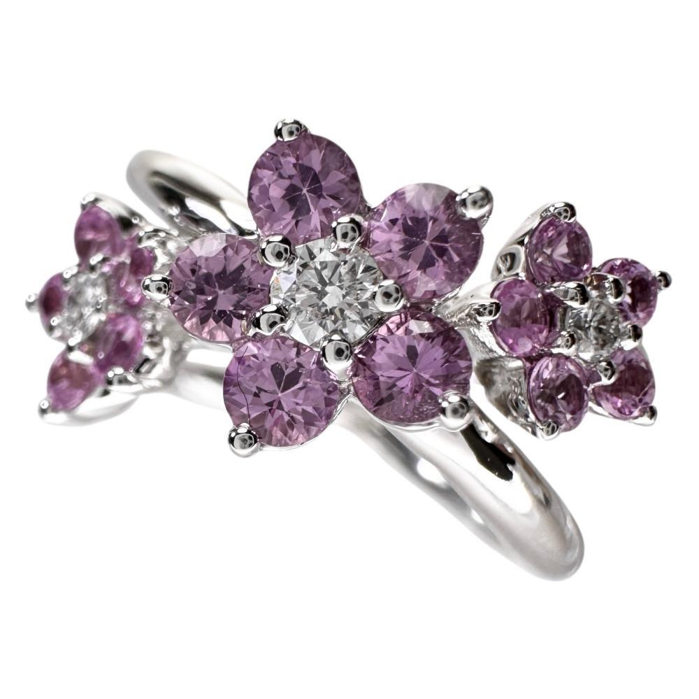 > 12号 花/フラワーモチーフ ピンクサファイア 1.10ct ダイヤモンド 0.16ct リング・指輪 K18WGホワイトゴールド 7.9g レディース
