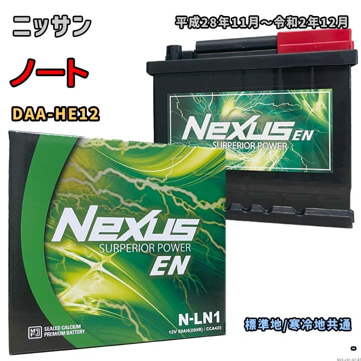 > バッテリー NEXUS N-LN1 ニッサン ノート DAA-HE12 平成28年11月~令和2年12月 e-POWER S 対応 LN1 互換 67