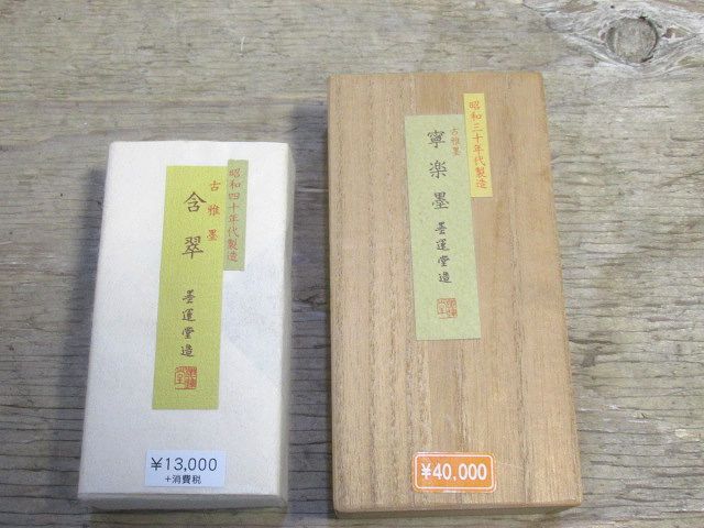 - 書道具 古墨 昭和四十年代 古雅墨 含翠 昭和三十年代 寧楽墨 2点 未使用 定価53000円