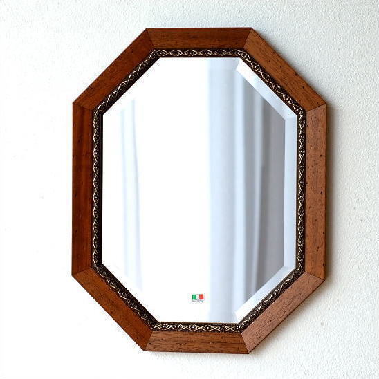 - 鏡 アンティーク 壁掛けミラー イタリア製 ブラウン 八角 ウォールミラー イタリアンミラー バロッコ 送料無料(一部地域除く) ebn5867