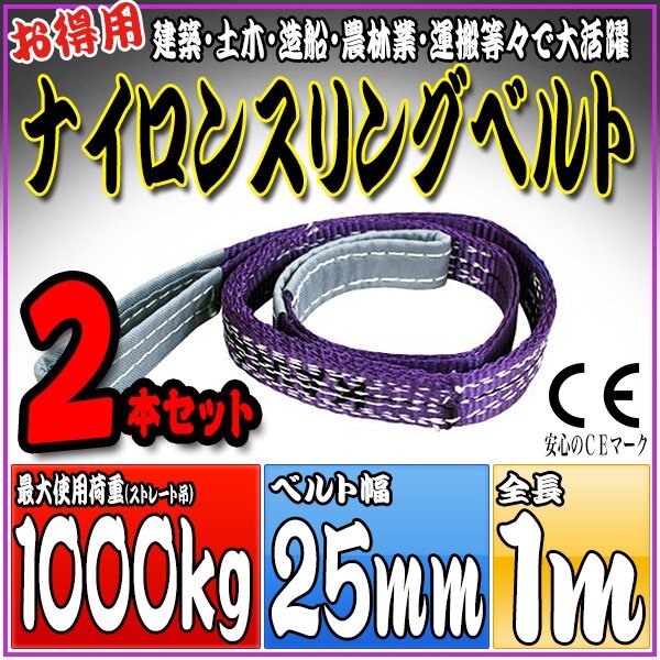 > スリングベルト2本セット 1m 幅25mm 使用荷重1000kg 1t 1.0t 吊りベルト ベルトスリング [ナイロンスリング 吊上げ ロープ 牽引 運搬]