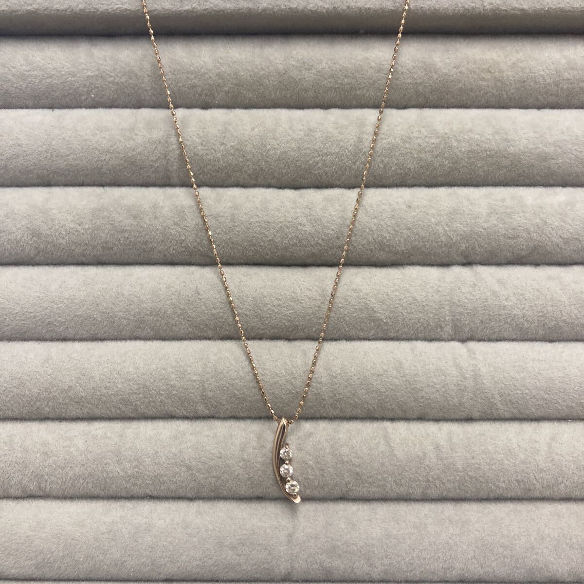 > K10 ジュエリーマキ ダイヤモンドネックレス 0.18ct 3石 約40cm ピンクゴールド