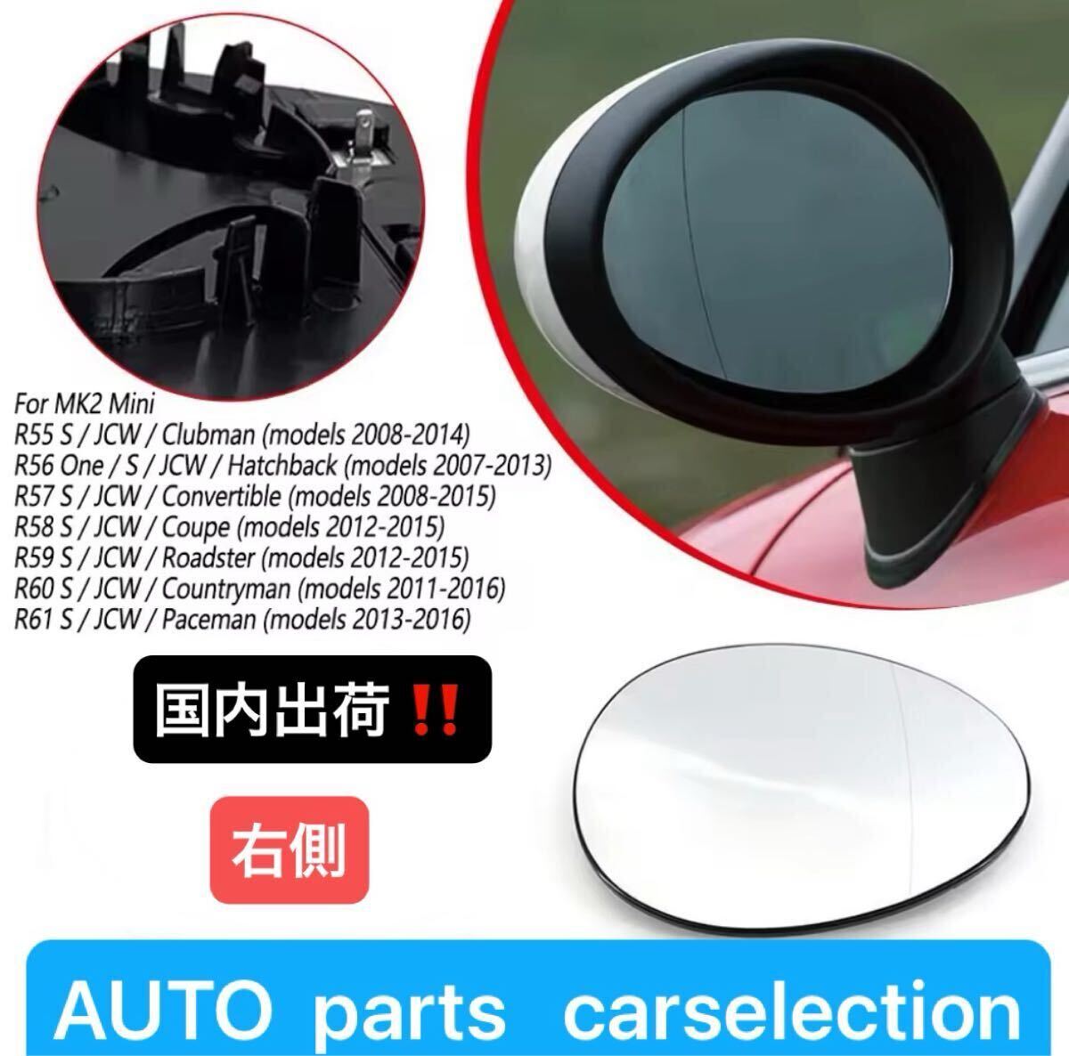 - 即納▲送料無料▲BMW MINI ミニ [右]ドアミラー レンズ ガラス 爪付き 運転席側 R55 R56 R57 R58 R59 R60 R61 ヒーテッド仕様 社外品
