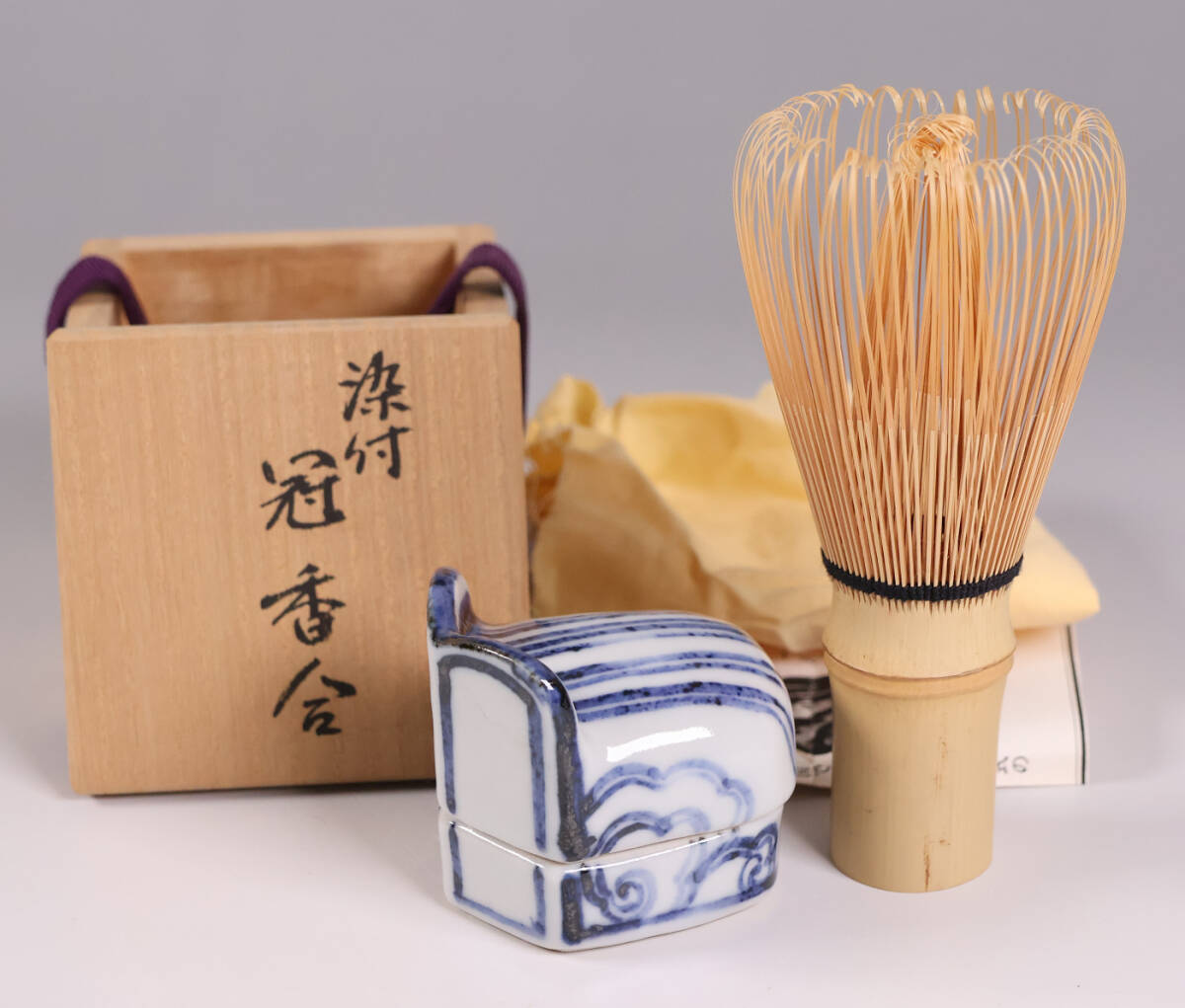 - 茶道具 大桃窯 染付うつし 冠香合 共箱 陶芸【CM330】