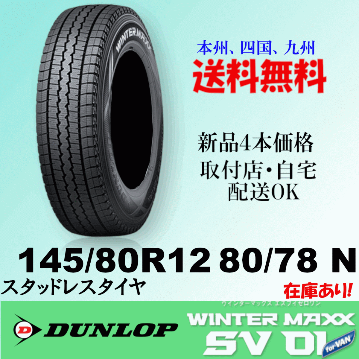 - 145/80R12 80/78 N 送料無料 24年製 ダンロップ ウインターマックス SV01 4本価格 スタッドレスタイヤ 正規品 WINTER MAXX