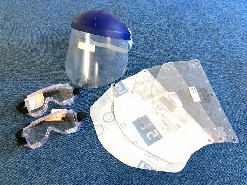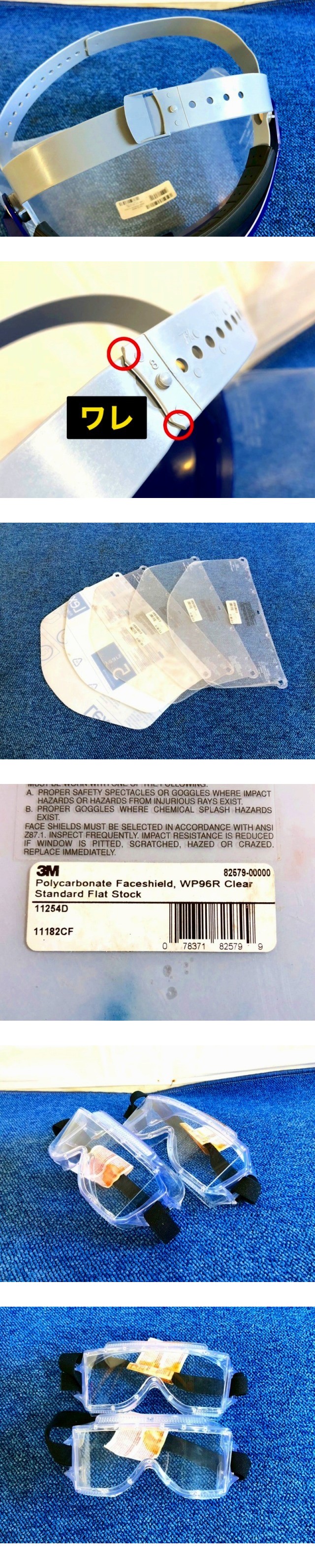> 【米軍放出品】未使用品 保護用フェイスシールド(ヘッドバンド×1個/バイザー×5枚) 3M ゴーグル×2個 (80) ☆BI15MK-W#25