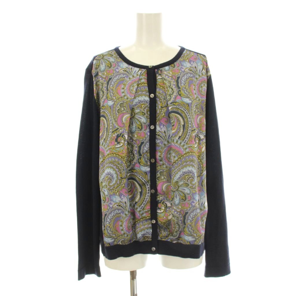 > ダックス DAKS ニットカーディガン 長袖 クルーネック シフォン 切替 ペイズリー柄 紺 ネイビー マルチカラー /KU レディース