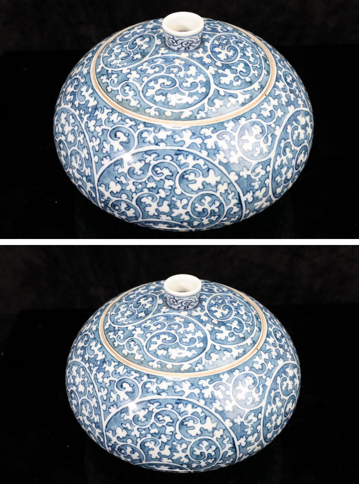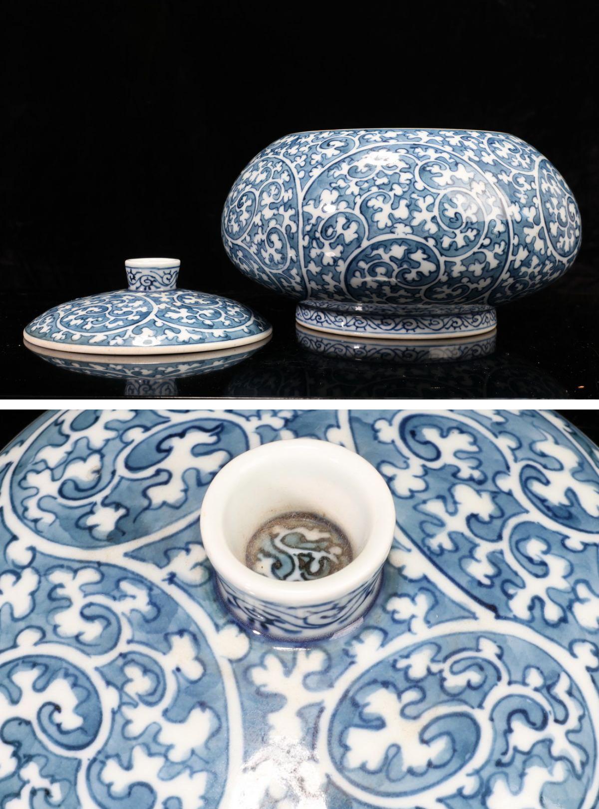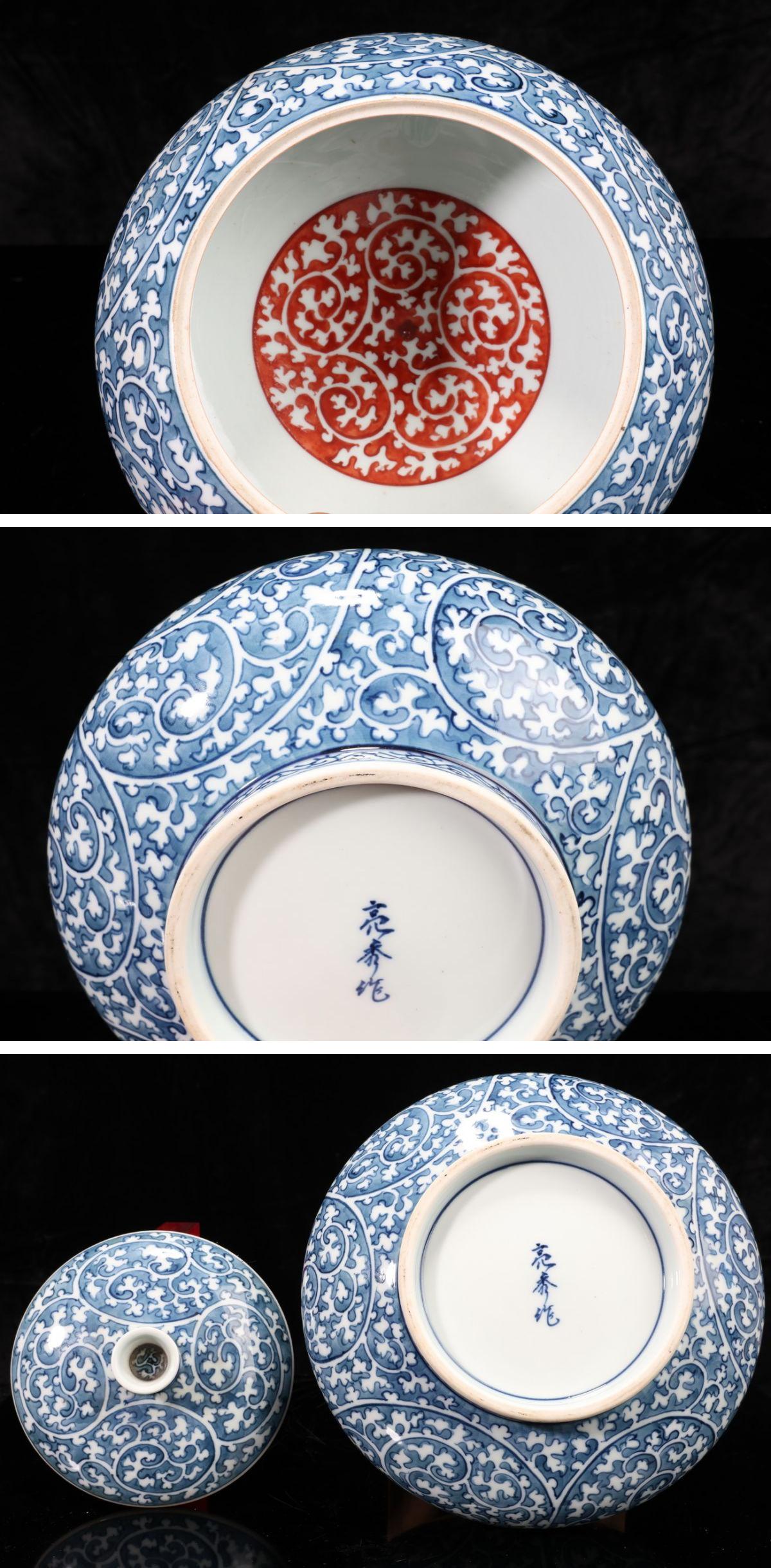 > 【珍品堂】1円から Y70-V10 茶道具 蓋付 在銘 染付 高13cm 置物 縁起物 希少 骨董品 古美術 時代物