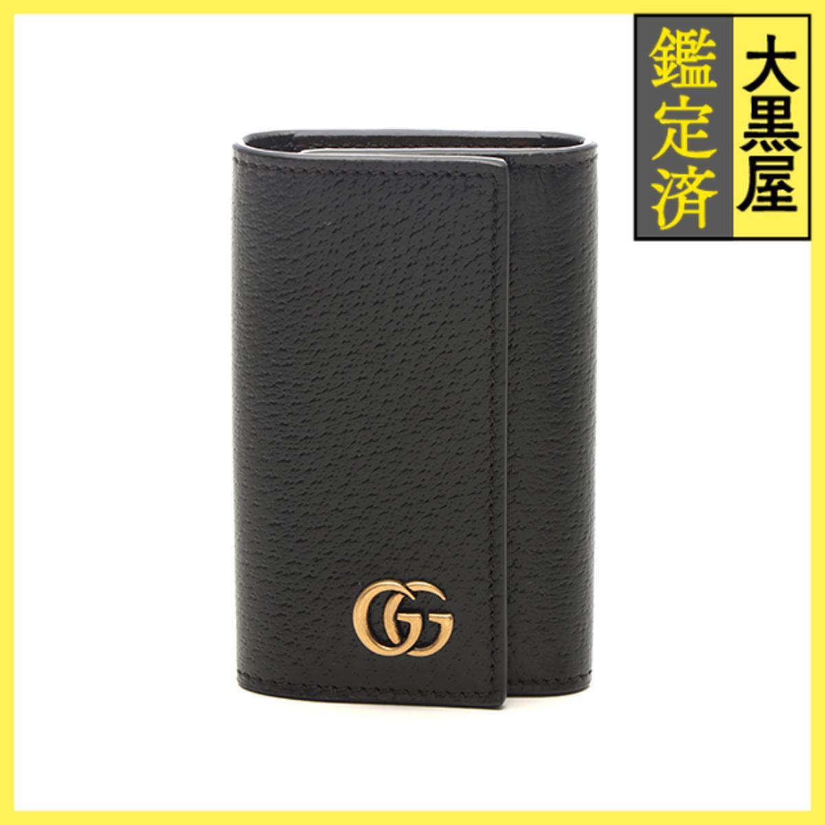 - GUCCI グッチ ダブルGG 6連キーケース ブラック GP レザー