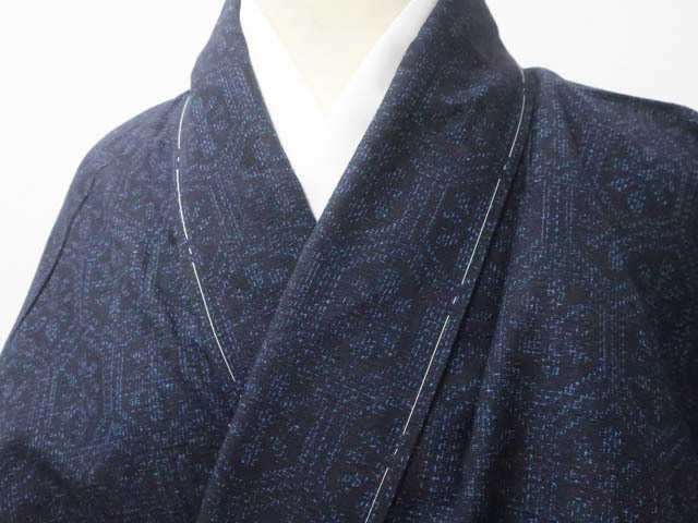 > 《京都一輝堂》リサイクル着物 紬 花亀甲 正絹 身丈約157cm 裄丈約63cm 25z09-5094