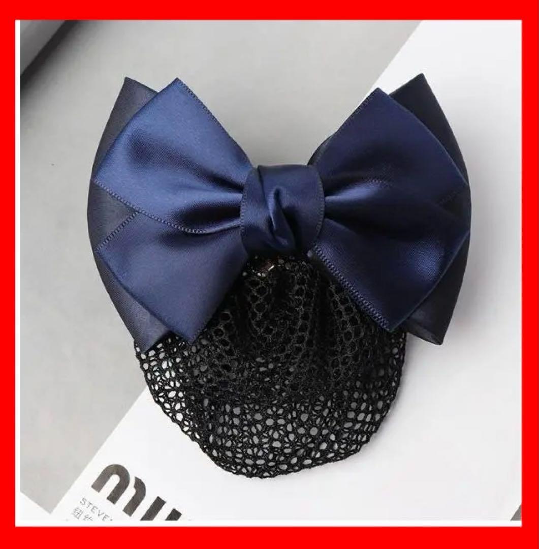 - 新品 バレッタ リボン ネット 面接 就活 髪留め 受験 説明会 ネイビー 紺