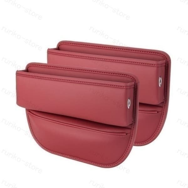 - アウディ Q5 8RCHJF 車のシート 隙間ボックス左右2個 センター隙間埋め レザー 落下防止 小物入れ レッド(no cup)