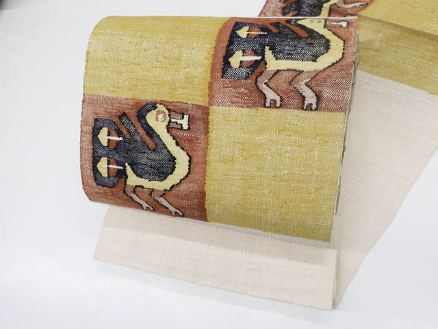- 《京都一輝堂》【着物】八寸名古屋帯 鳥文 太鼓柄 紬織 25b02-111