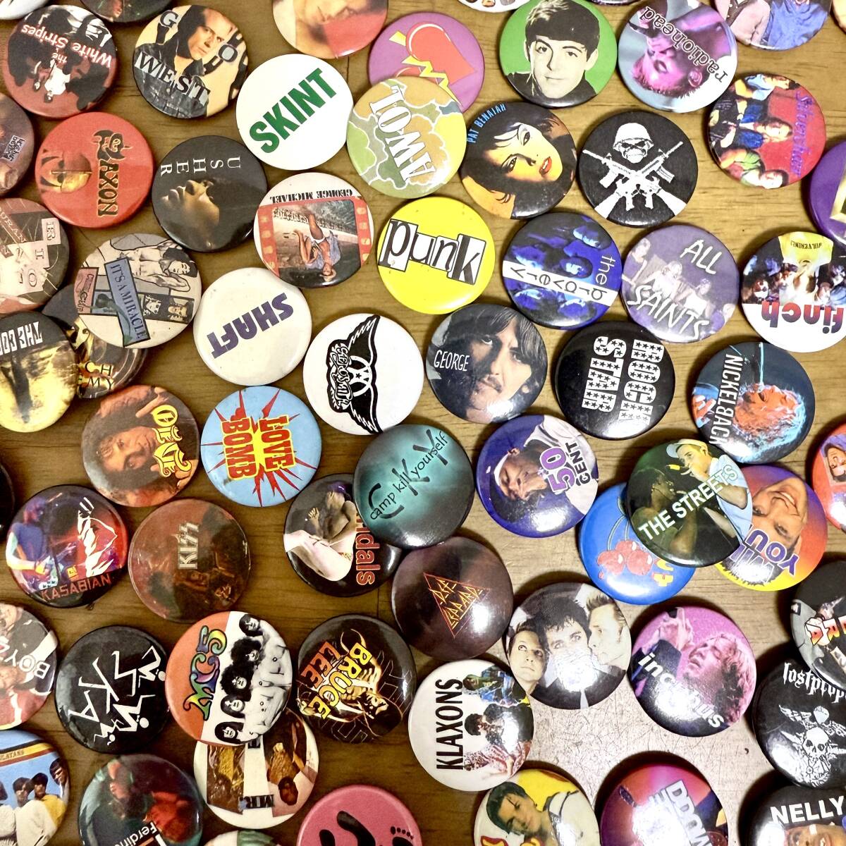 - 100個 缶バッジ 大量 まとめて まとめ売り バッチ セット アメリカ ロック アメリカン 洋画 俳優 音楽 アクセ ガレージ バッグ トート P727