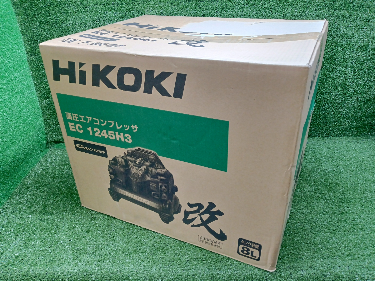 > 未使用品 HiKOKI ハイコーキ エアコンプレッサ 高圧 常圧 タンク容量8L 黒 ブラック EC1245H3 (CTN) ①