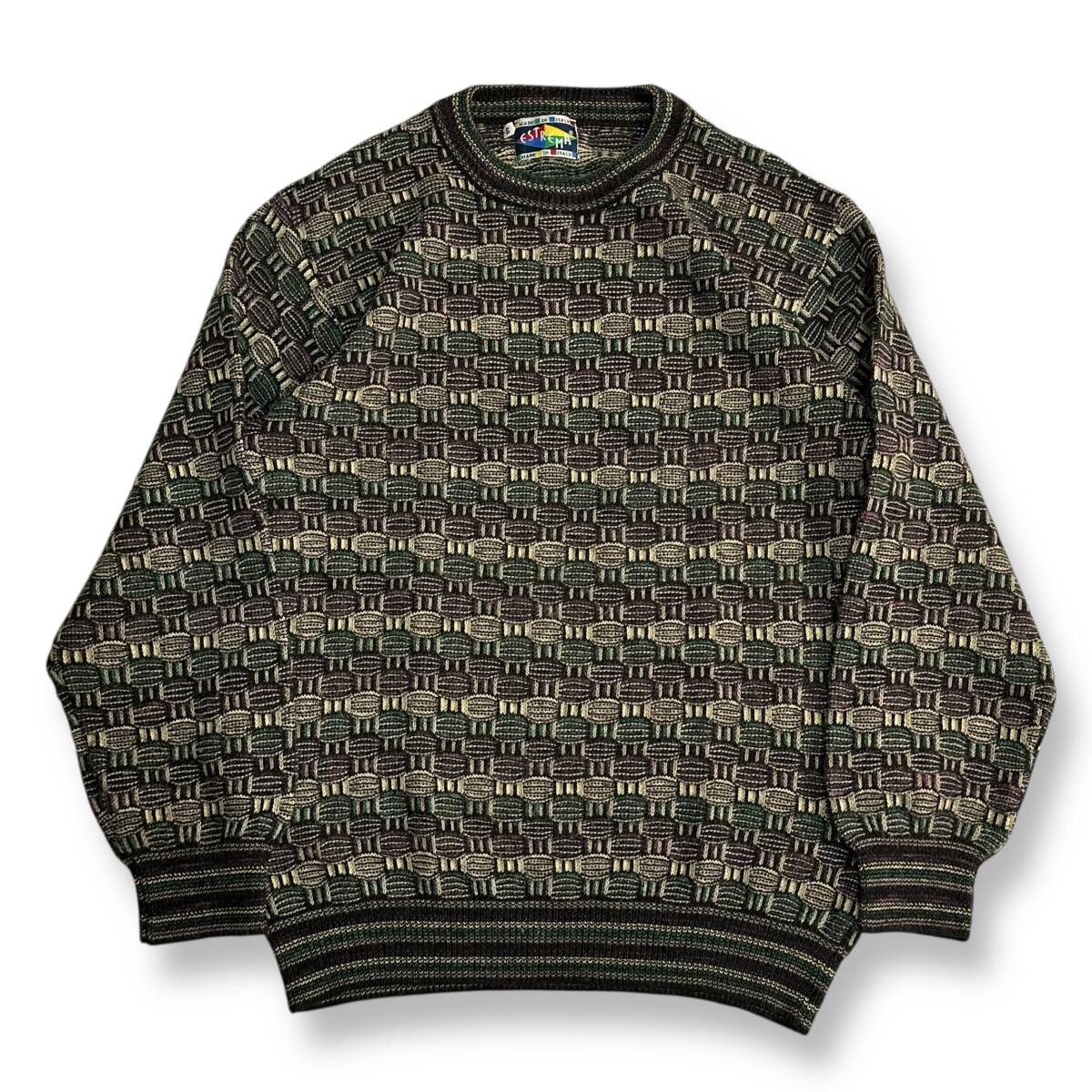 > 希少 秀逸【ESTREMA】VINTAGE 90s 3D 立体デザイン イタリア製 レトロビンテージニット クルーネック 古着ミックスセーター