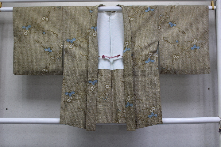 - きもの今昔9030 羽織コレクション 鹿の子絞り風抹茶色朝顔柄 ポリエステル100% 羽織紐手組紐があ付いてます