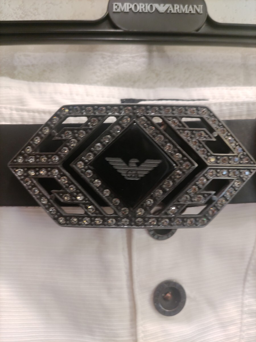 - 【美品・スピード配送】EMPORIO ARMANI エンポリオアルマーニ レザーベルト ブラック メイドインイタリー 34/52