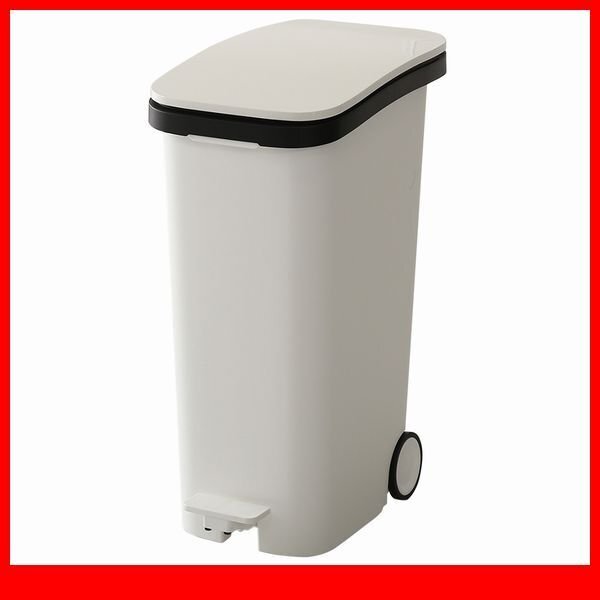 > ゴミ箱★スタイリッシュデザイン ペダル式ダストボックス/清音 安全 開閉/スリム 幅25.5cm 容量31L キャスター付き/日本製/ホワイト/a4