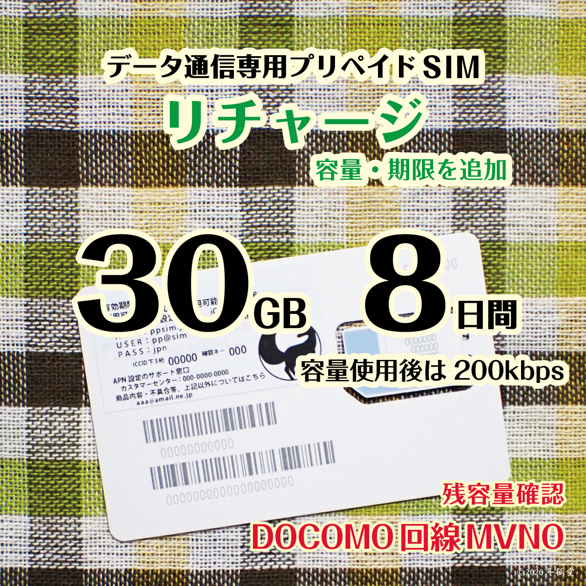 - [リチャージ] 30GB 8日間 (容量使用後は200kbps) DOCOMO回線MVMO データ通信専用プリペイドSIM #冬狐堂