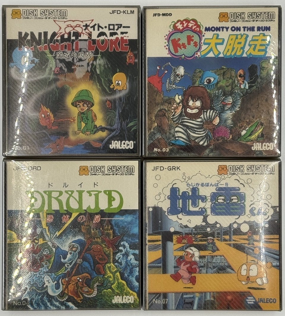 - JALECO/ ジャレコ:ナイト・ロアー/ モンティのドキドキ大脱走/ ドルイド 恐怖の扉/ らじかるぼんばー!! 地雷くん FCD4枚SET 箱付き中古
